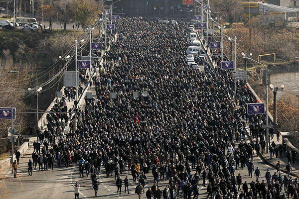 আর্মেনিয়ার বিরোধী দল দাবি করছে, রাশিয়ার মধ্যস্থতায় নাগোরনো কারাবাখ নিয়ে আজারবাইজানের সঙ্গে চুক্তির ফলে পাশিনিয়ানের অদক্ষতাই দায়ী। সংঘাত ও সেনা সদস্যদের মৃত্যুর জন্য তারা আর্মেনিয়ার প্রধানমন্ত্রীর প্রদত্যাগের জন্য চাপ সৃষ্টি করে যাচ্ছে। শনিবার তিন দিনের শোকযাত্রার প্রথমদিন নেতৃত্ব দেন আর্মেনিয়ার প্রধানমন্ত্রী। এ সময় উপস্থিত ছিলেন সেনাবাহিনীর উচ্চপদস্থ কর্মকর্তারা।