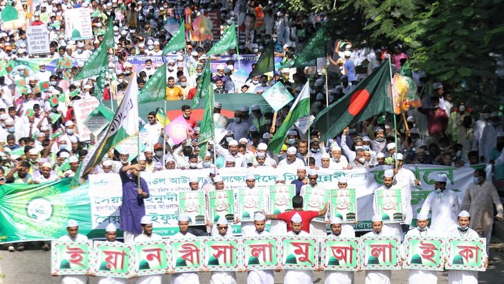 জুমার নামাজের রাজধানীর নানা জায়গায় জসনে-জুলুসে ঈদে মিলাদুন্নবী (সা.) উপলক্ষ্যে খন্ড-খন্ড মিছিল বের হতে দেখা যায়।-খবর বাসসের